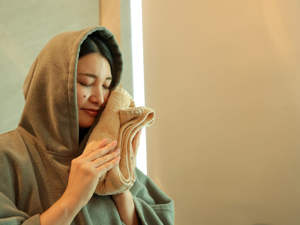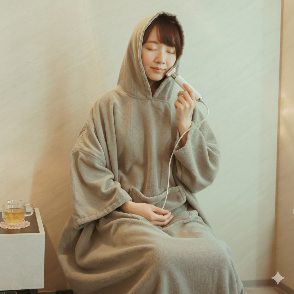 よもぎに含まれる美容成分と蒸気による保湿に加え、血行が促進されることで顔色が明るくなり、自然なツヤとハリが出やすくなります。セルフエステのリフトアップケアと合わせることで、内側から輝くような美肌を目指せます